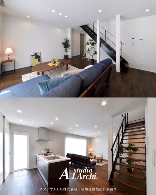 今回は、スタヂオA.I.A.の設計事例より、「2階リビング×ホワイトインテリア×ハーフインナーバルコニー」の住まいをご紹介します。